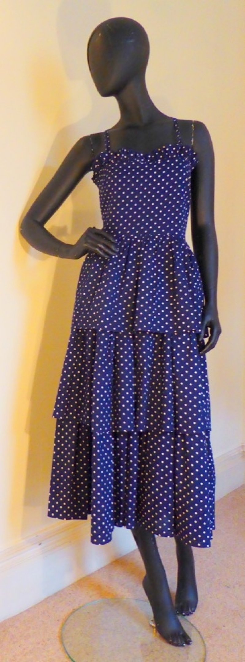 Droopy & Brown navy polka-dot cotton tiered sundress, 1990s, size S