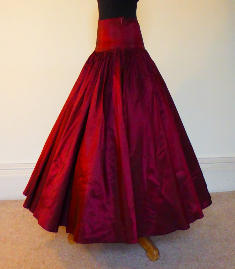 1990s OMO Norma Kamali burgundy taffeta skirt, size S