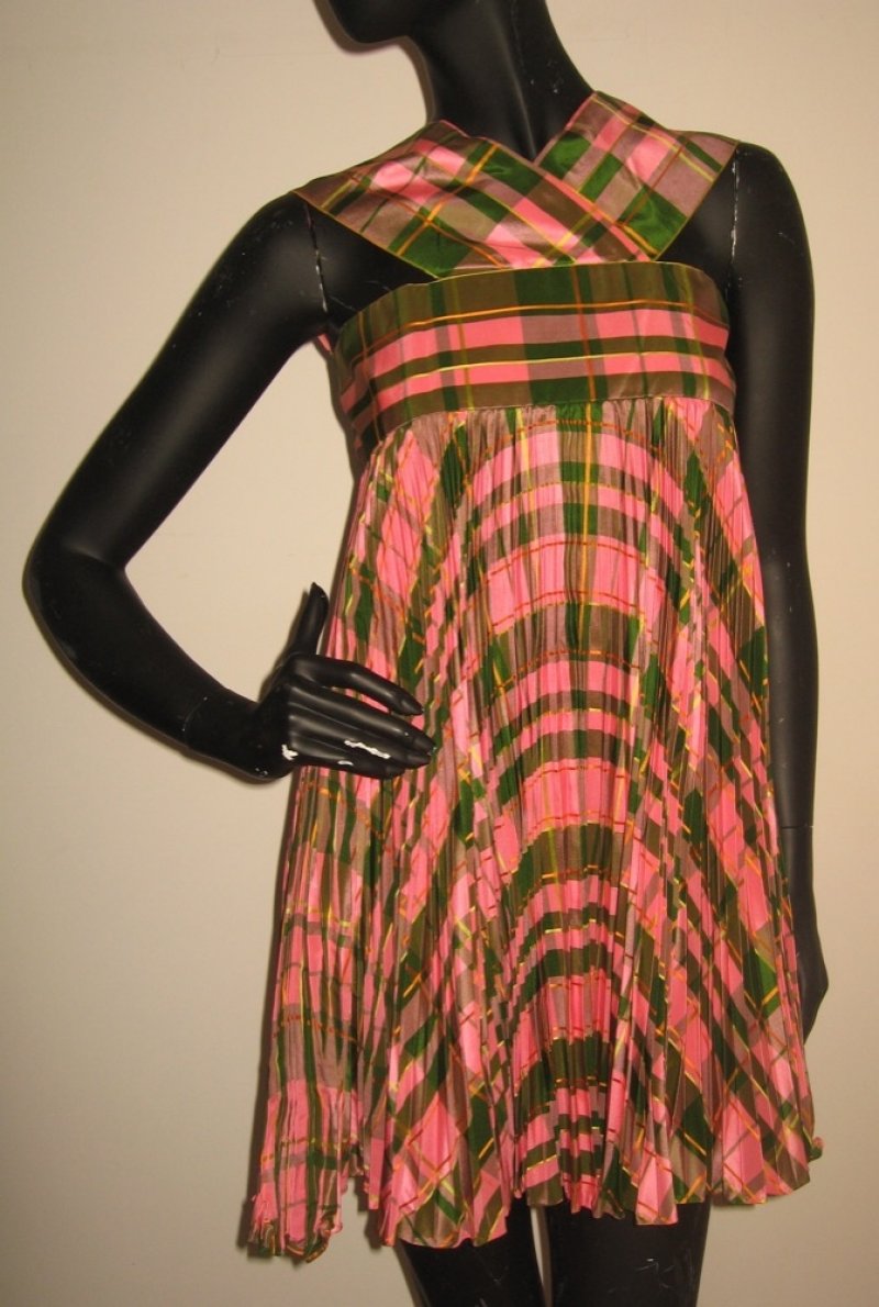 Amazing pink tartan pleated taffeta dress by Moss Matson, size S/M