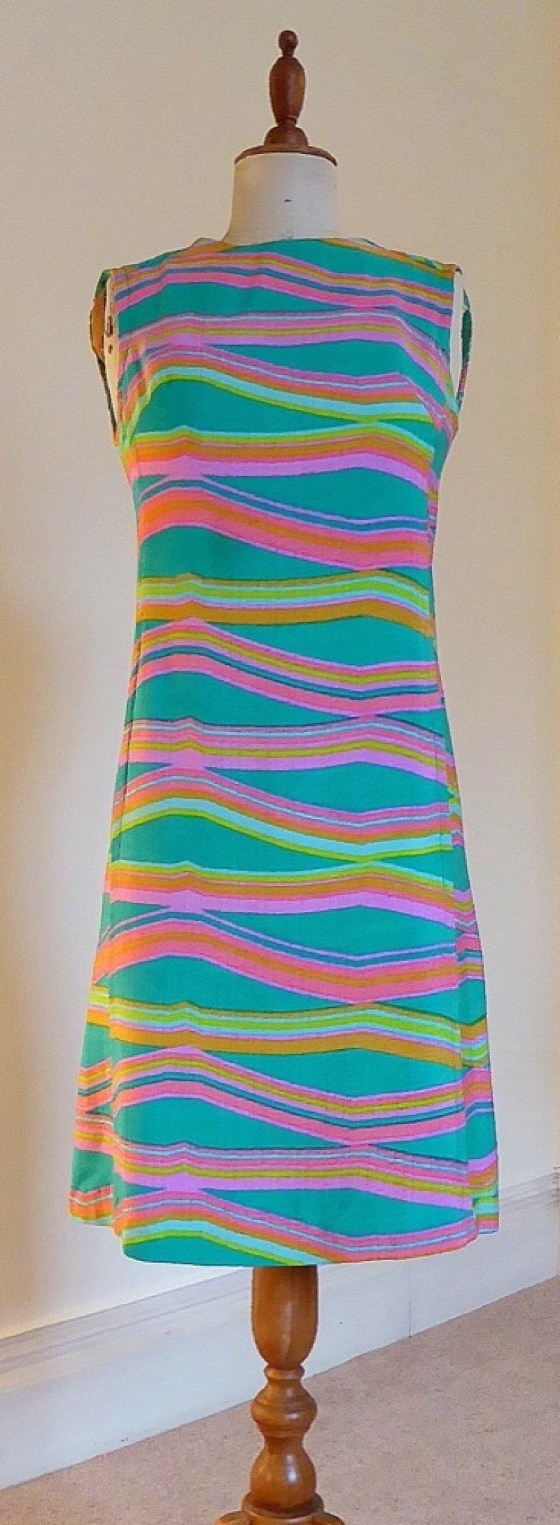 Acid stripe 60s linen shift dress, size M