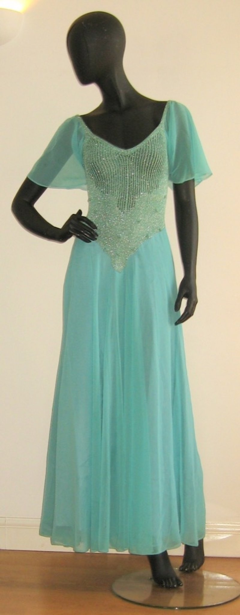 Chiffon dress with paillette bodice by Malcolm Starr, size S