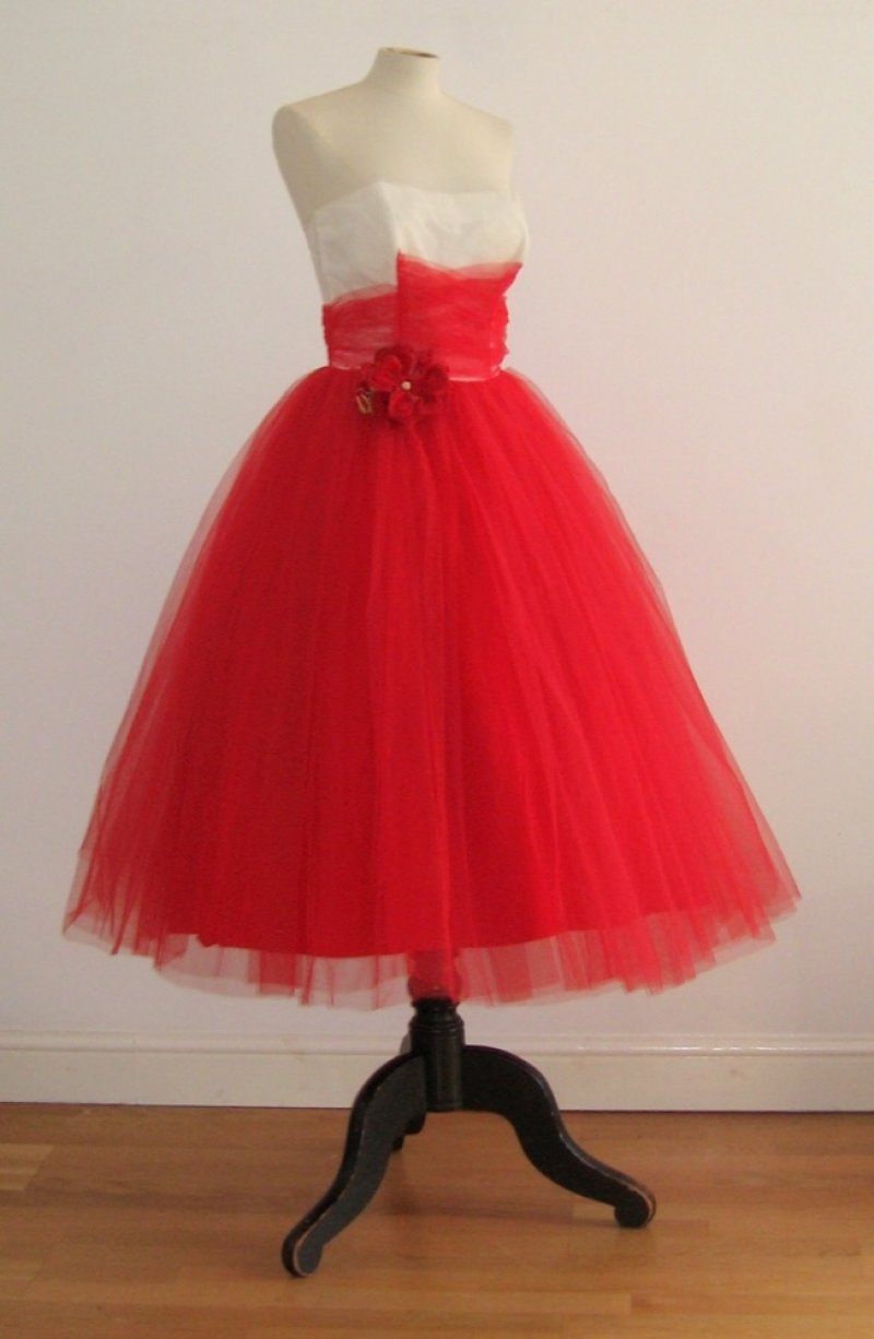 Scarlet and white tulle bustier prom dress, size XS
