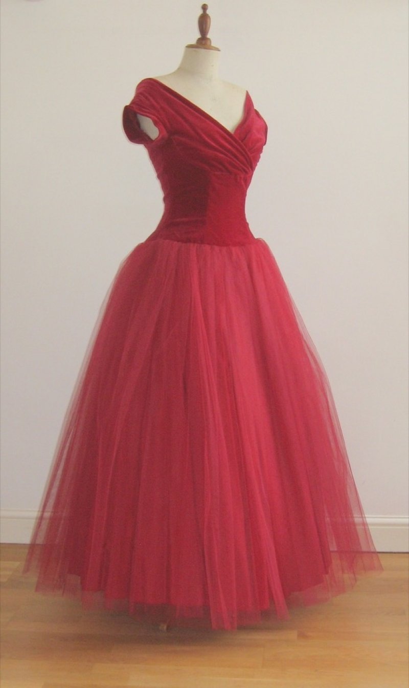 Crimson velvet and tulle dress, size M
