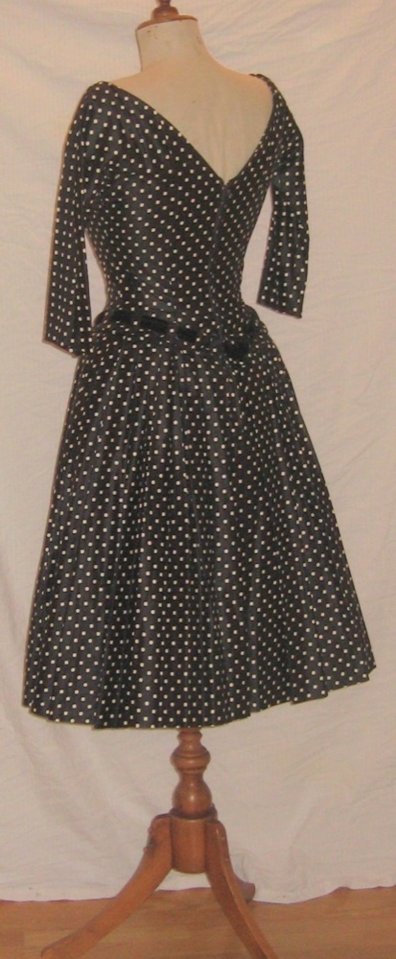 Suzy Perette black & white polka-dot dress with velvet trim, size M