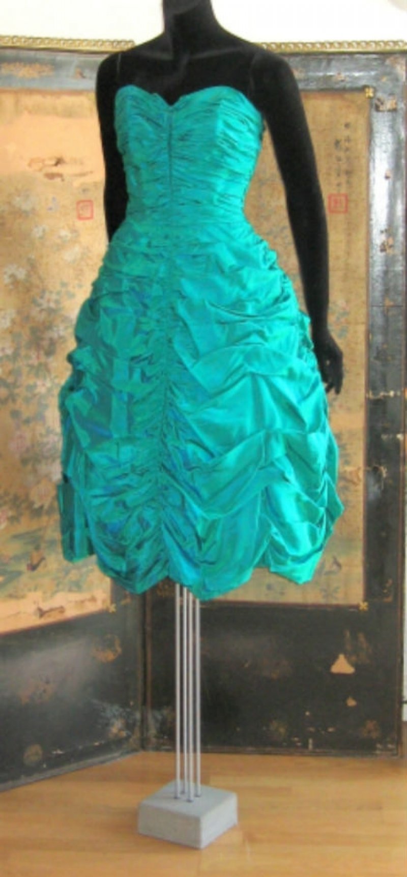 Will Steinman aqua taffeta ruched bustier dress, size S