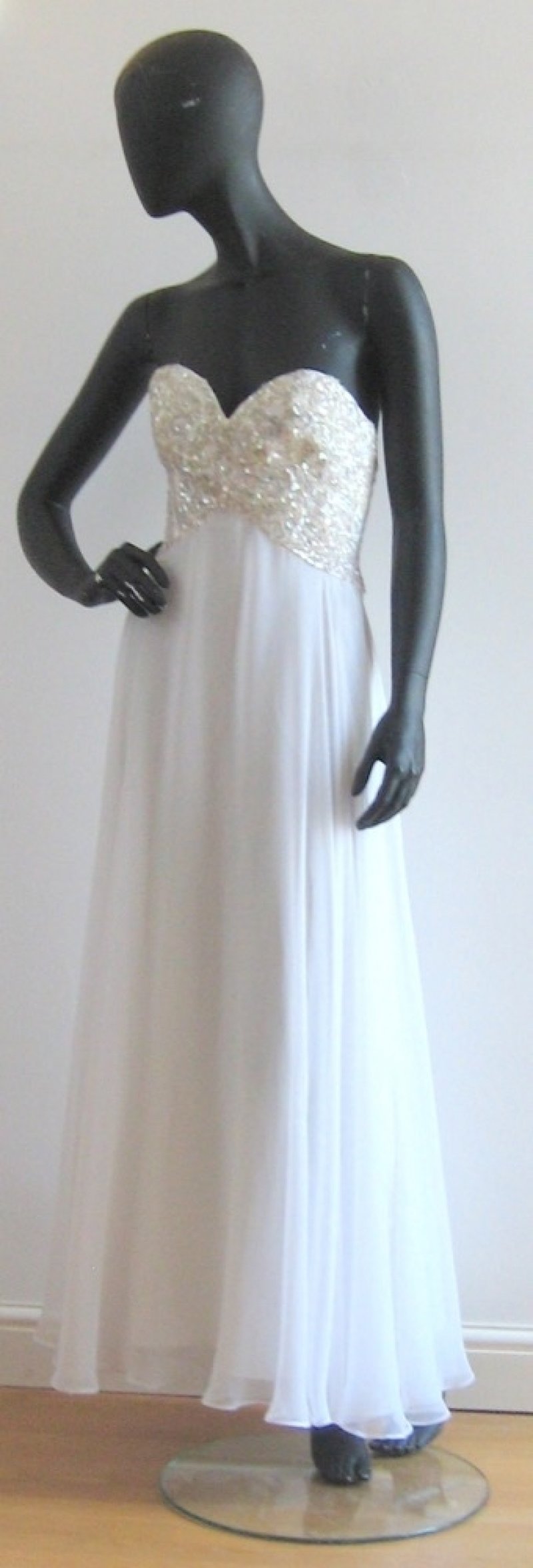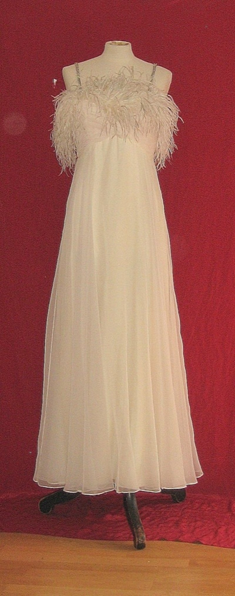 WS10 Cream chiffon dress with ostrich feather trim, size S