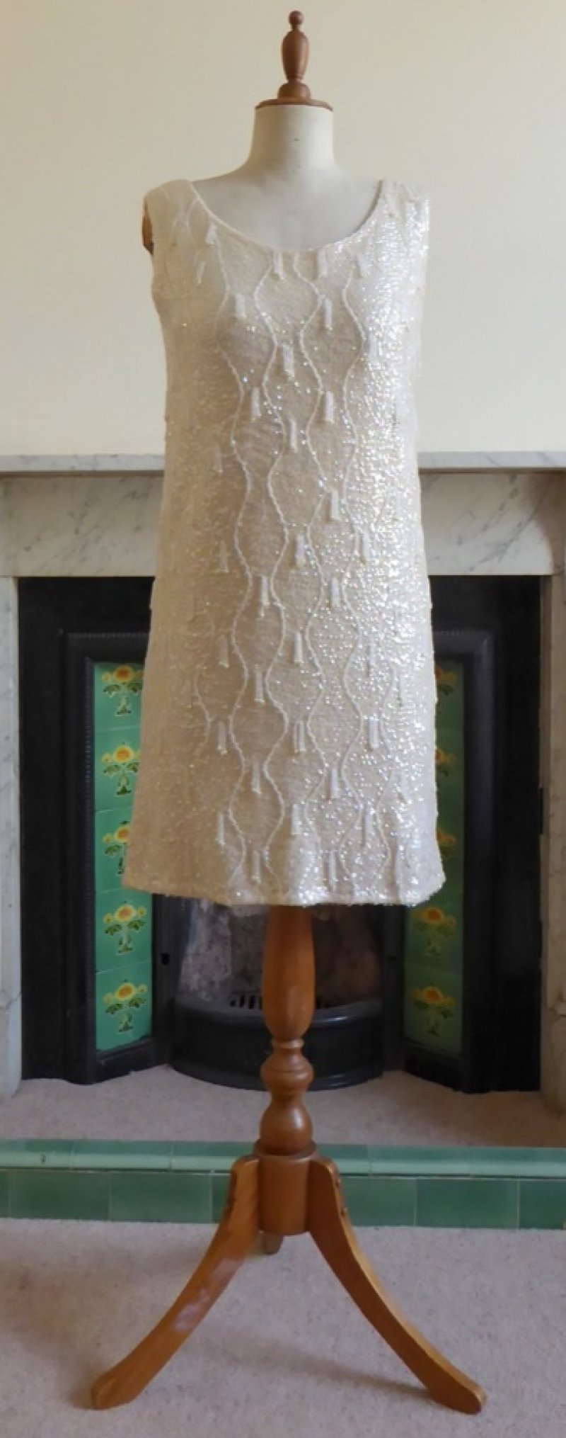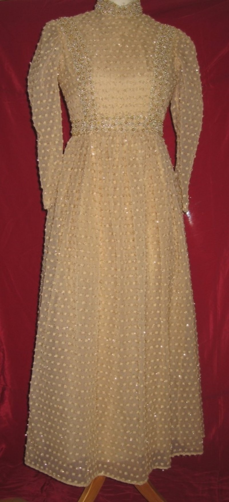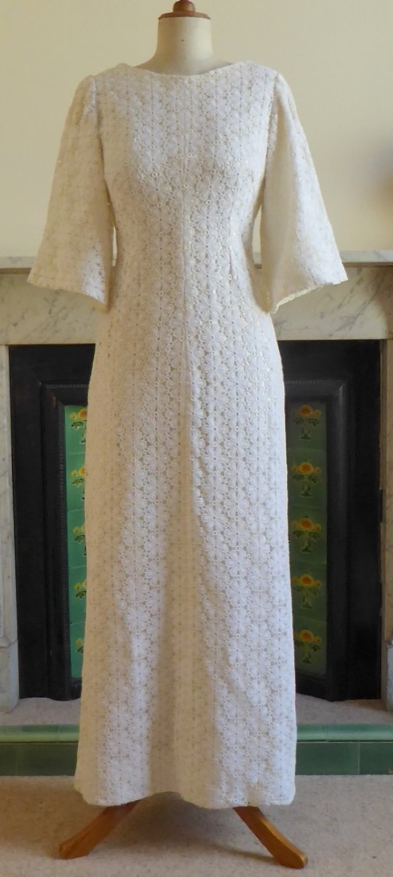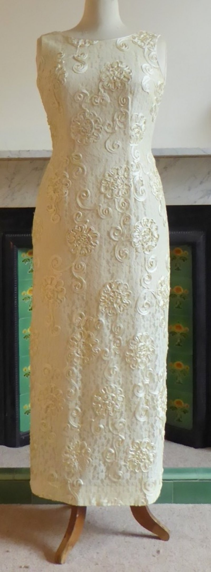 WS12 Fred Perlberg cream crochet high-necked dress, size S