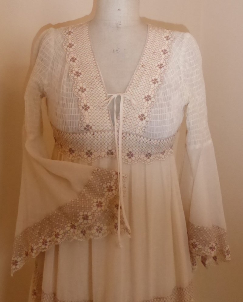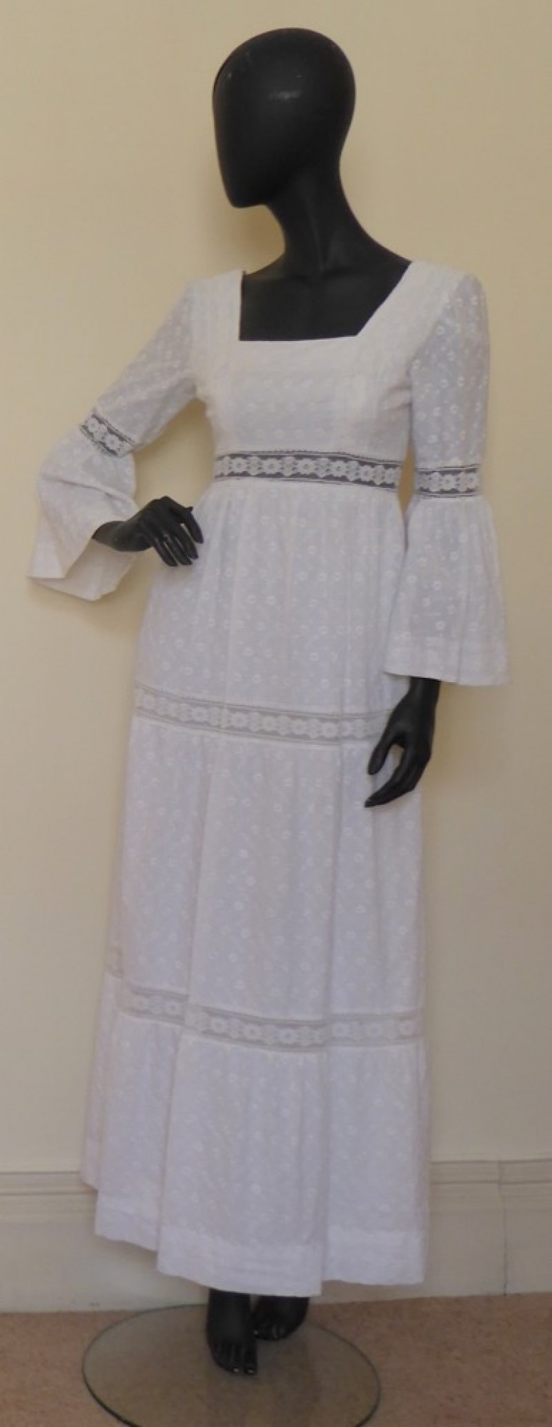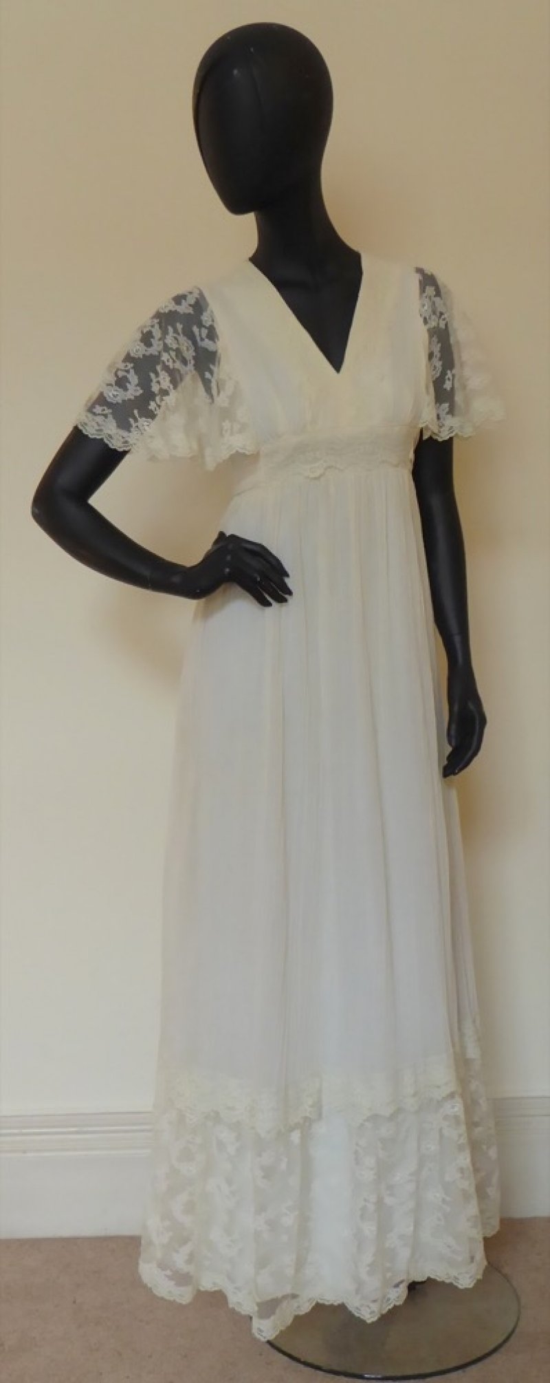 WS501 White cheesecloth 70s boho wedding dress by Mr Darren, size XS