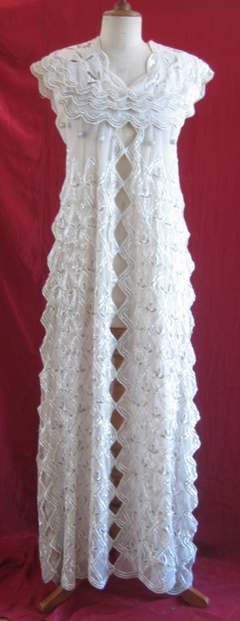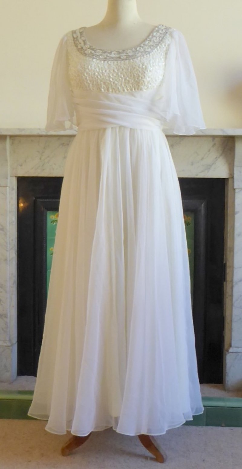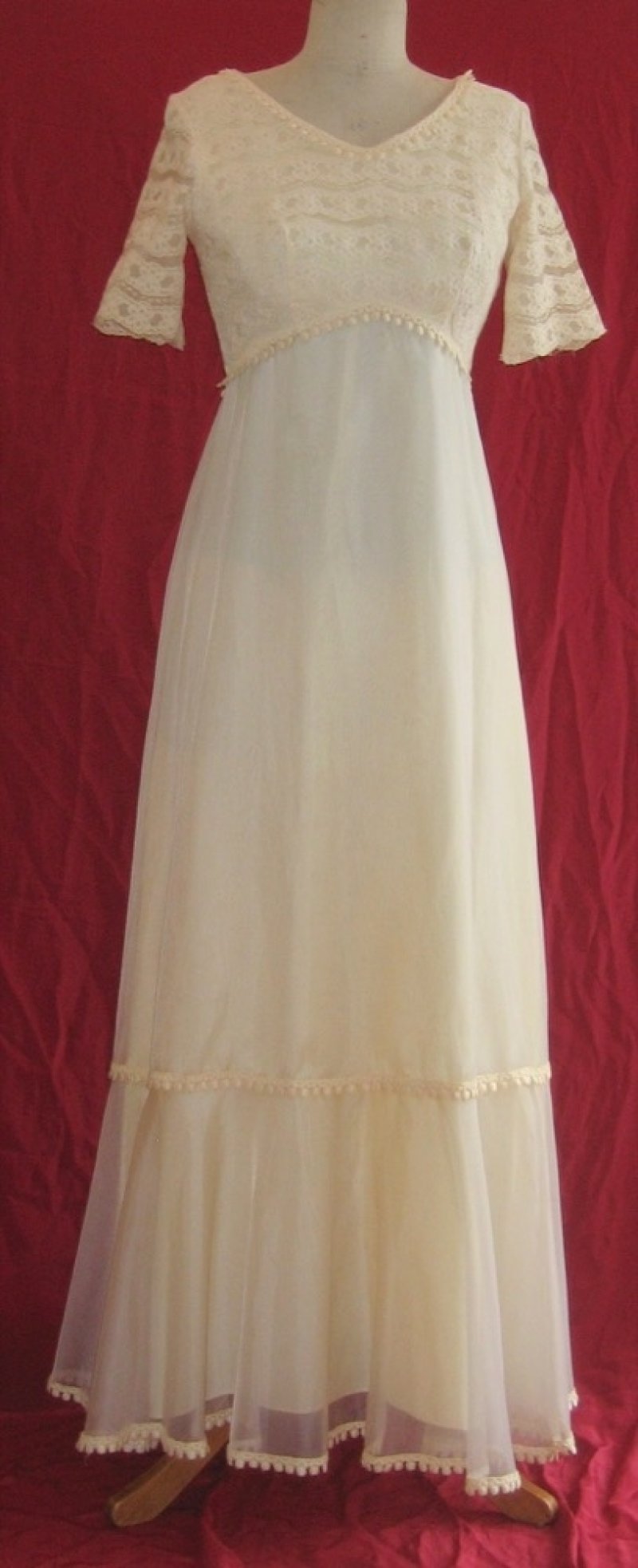 WS501 White cheesecloth 70s boho wedding dress by Mr Darren, size XS