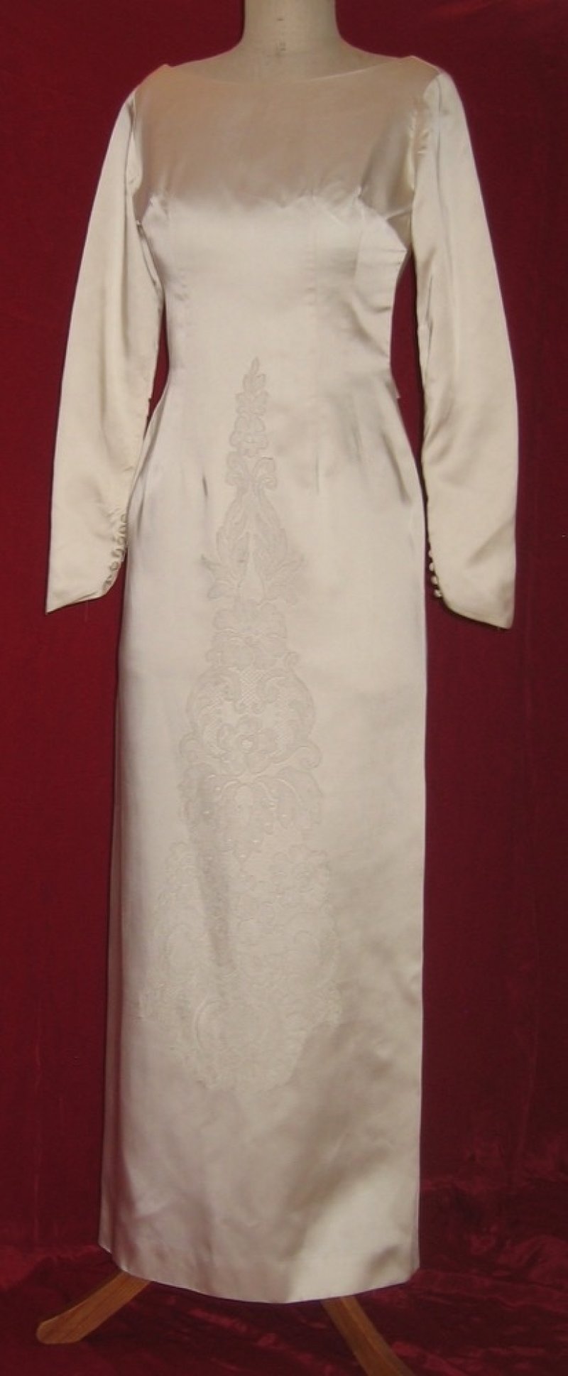 WS38 Simple, fitted moonlight satin long-sleeved wedding dress, size M