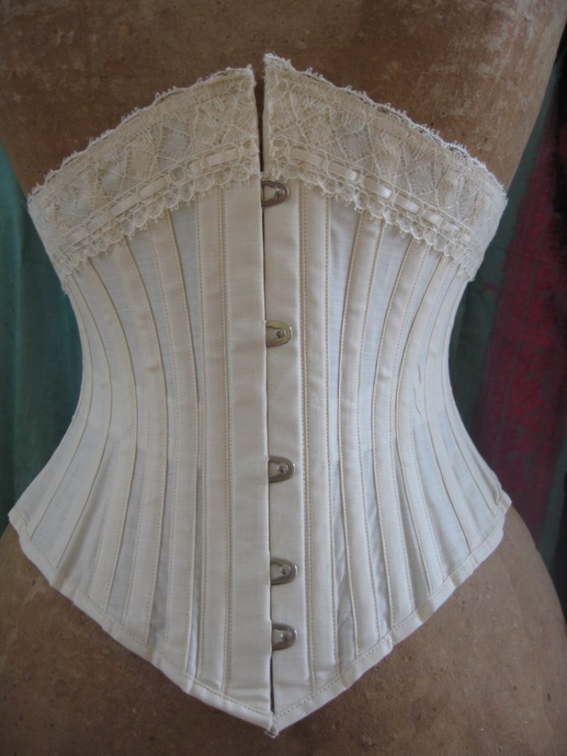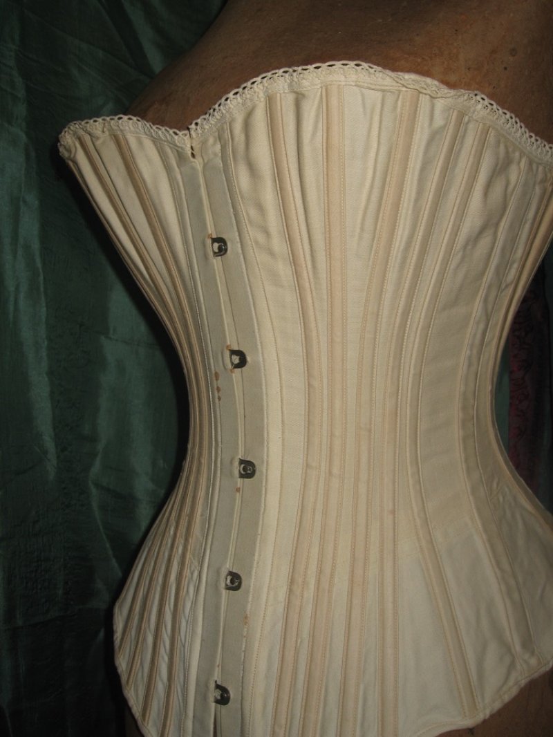 V22 White coutil waist corset c1890