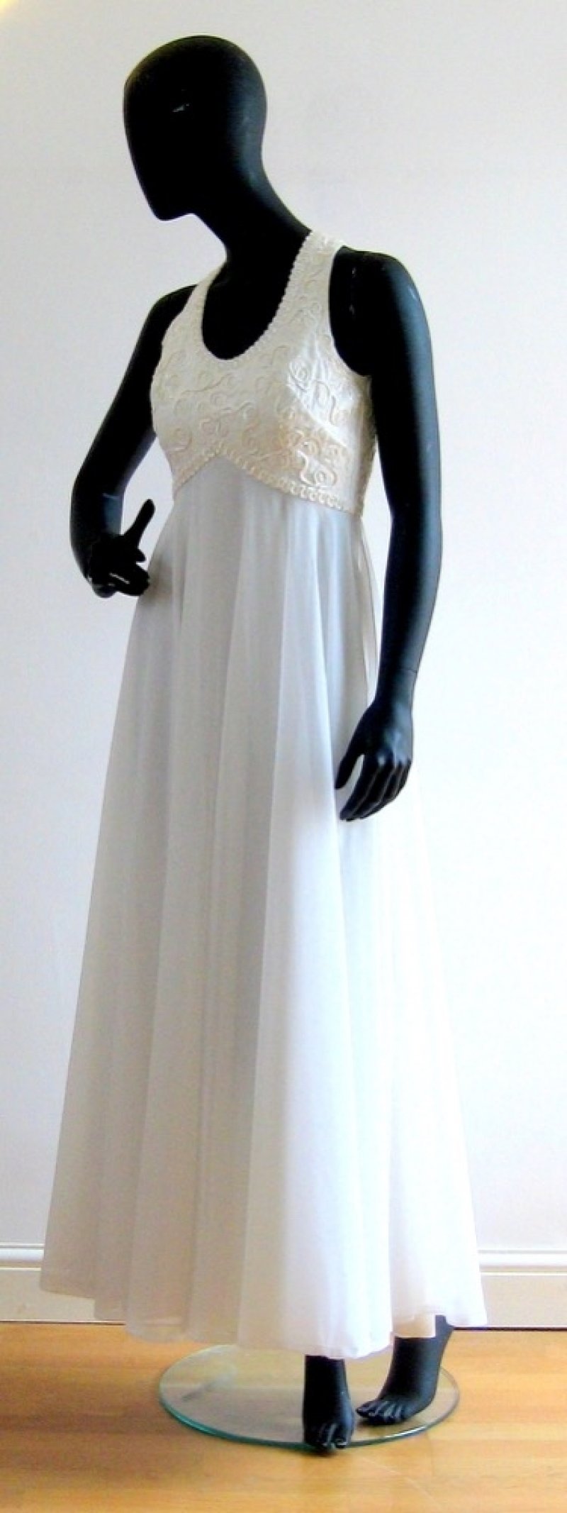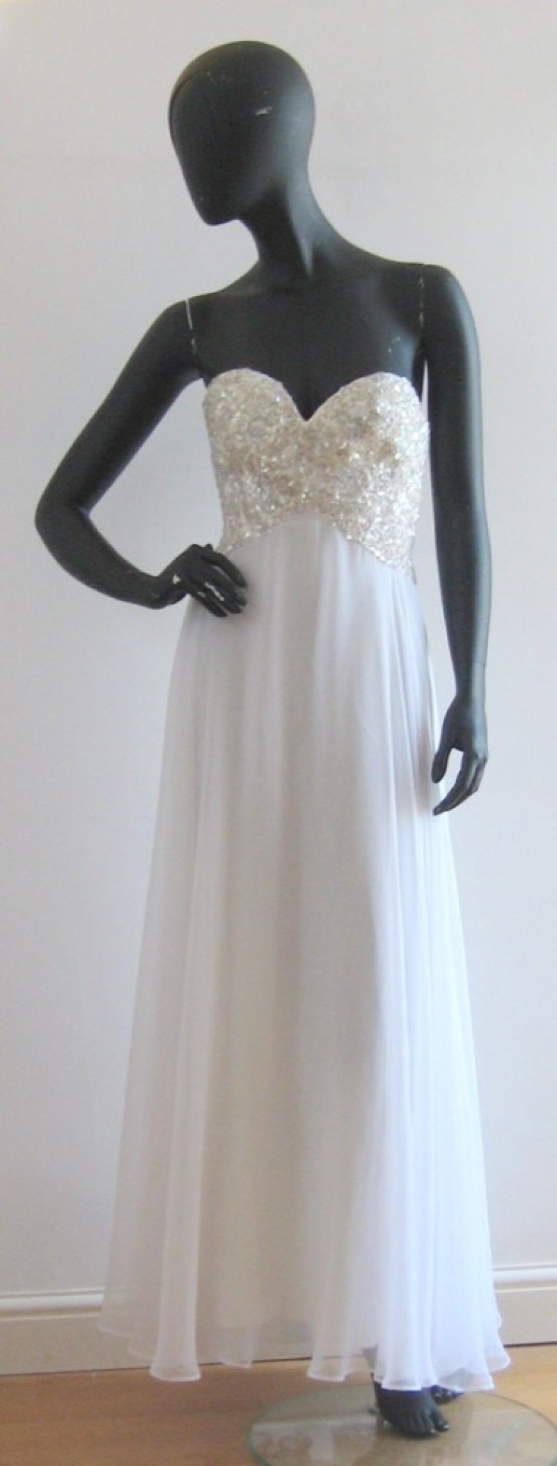 WS27 White chiffon dress with sequin bodice