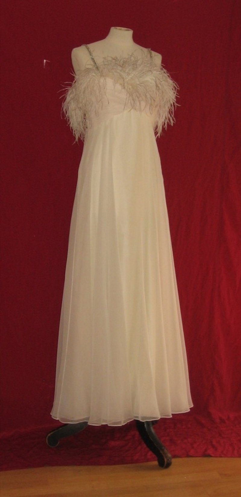 WS10 Cream chiffon dress with ostrich feather trim