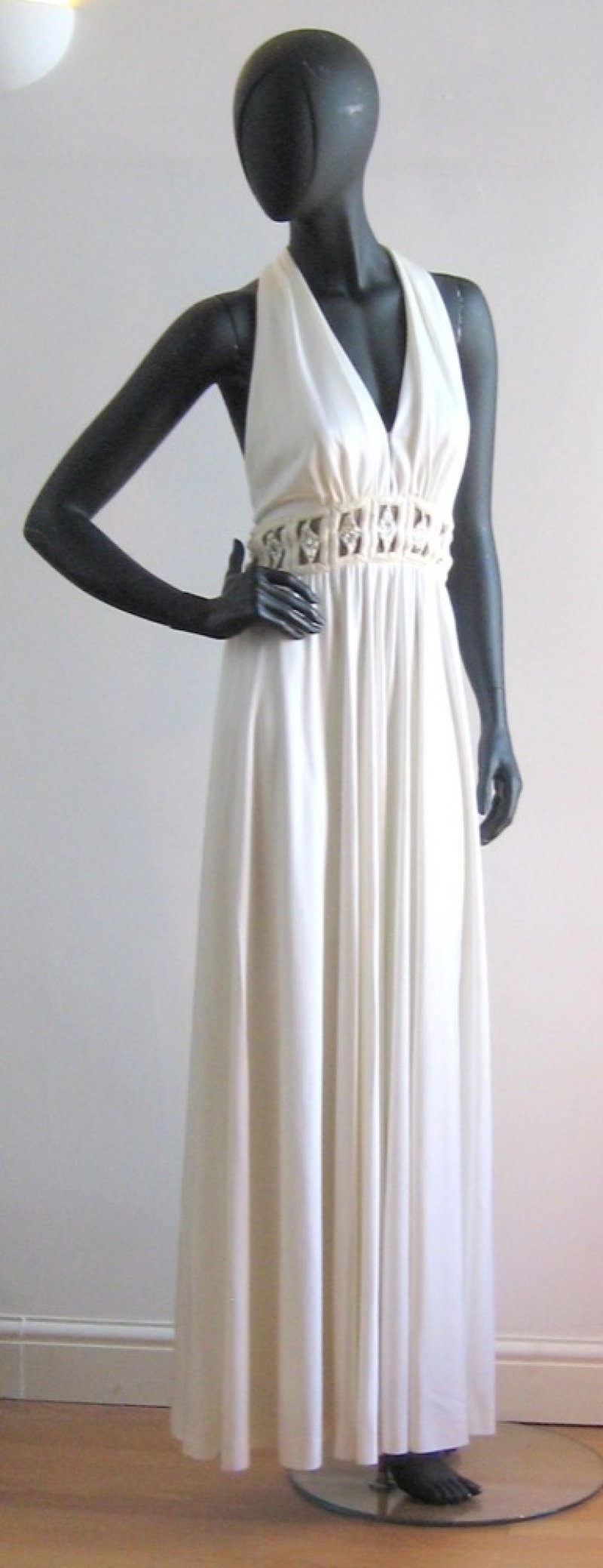 WS33 White 1970s dress by Young Dimension with diamante waist detail and racer back, size S/M